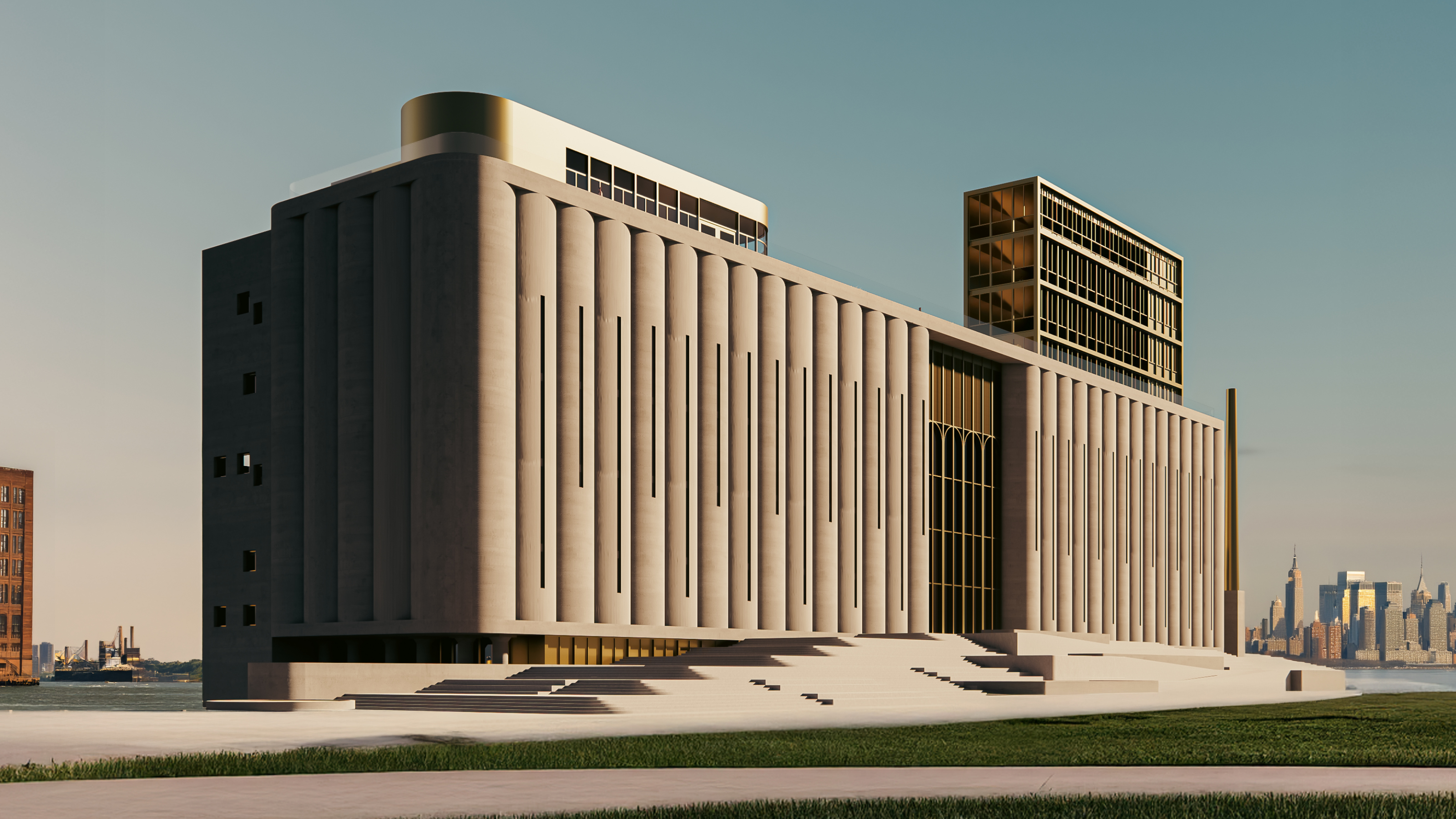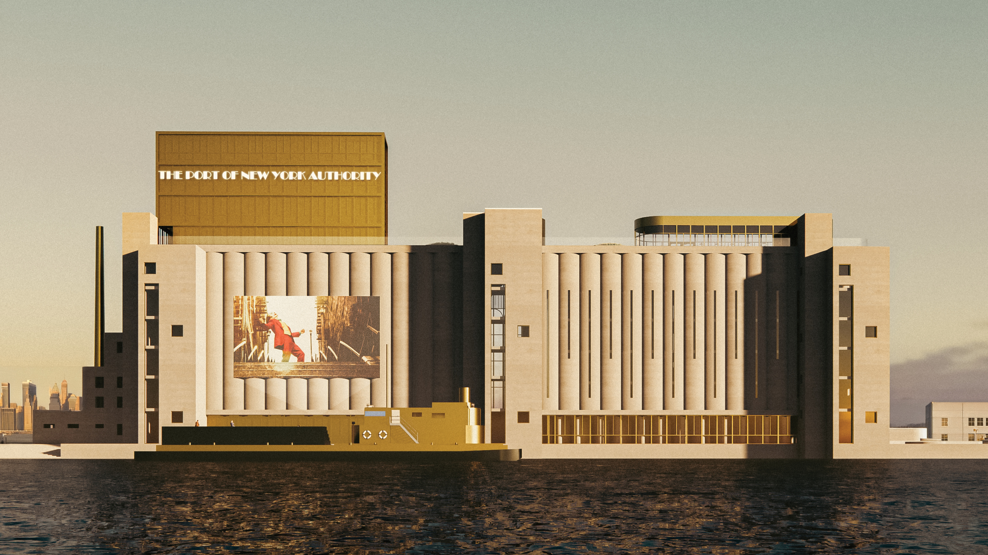 Grainhouse Arts Terminal reimagines Brooklyn’s 1922 Red Hook Grain Terminal as a cultural engine and climate-resilient landmark for New York. A collaboration between SMA × Marcus.House, the project transforms an industrial relic into a centre for creativity, performance, and community. The 54 silos are preserved and reimagined to house 120,000 square feet of flexible space, including a performance hall for live music, exhibitions, and public events. The concrete shell is lightly refurbished to celebrate its raw character, while the exterior becomes an active public realm with climbing, abseiling, and a dockside cinema accessible by ferry. Above, a greenhouse restaurant and daylight-flooded offices sustain the building’s future, while generative algorithms and prefabricated CLT modules minimise waste and preserve structure. Grainhouse Arts Terminal stands as an emblem of regenerative urbanism, transforming a dormant monument of industry into a vibrant landmark for New York’s creative future.